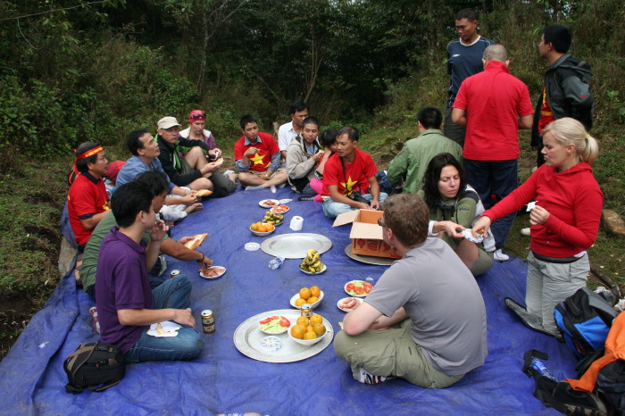 In first camp 2200 meters a.s.l we were able to gradually get to know other climbers of that day. There was one Vietnamese group, wearing all the national symbols, and few more white skins.