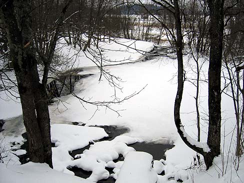 Tad zem sniega parādījās mitrums. Sākām brukt cauri pirmajam ledus slānim. Sajūta nebija patīkama, bet mūs nomierināja kāda zivtiņa, kura bija iznākusi paelpot un nebija paguvusi iesprukt atpakaļ āliņģī, pirms tas aizsala. Ledus bija gana biezs.