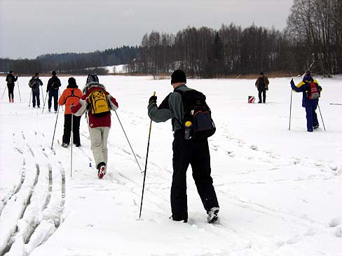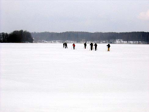 Tad sākās mūsu ezeru epopeja. Nekas vairs neierobežoja, sniegs bija plānāks un labi piemērots slidsolim. Izklīdām pa ledu.