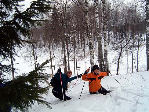 “Tālāk tur!”, mums centās iegalvot 3 A no Viveres, nepārprotami rādīdami uz briesmīga slaloma kalna pusi. Visi izsējas pa kalnu, meklēdami vieglāko ceļu. Tie, kas bija nolēmuši braukt lejā pa ledaino ceļu, drīz bija spiesti pāriet tekstilbremzēšanas režīmā. Kalna braucēji mēģināja turēties uz kātiem.