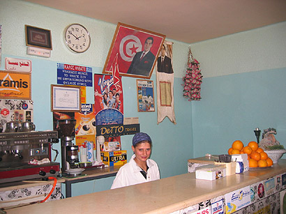 Jau teicu par kafejnīcām. Tās ir it visur un tajās vienmēr sēž veči. Vienreiz redzējām pilnu kafejnīcu pēc pieciem rītā. Visi sēdēja tā pat, kā dienas vidū vai vakarā. Pāris vietās uz ielas saulē izkārts kāds gaļas gabals. To laikam grillēs pusdienās. Te pēkšņi viss pamirst. Esam ceturtajā svētākajā vietā arābu pasaulē (aiz Mekas un…). Kairouana. Zaļā mošeja. Kā jau paredzējām, pie durvīm pieklājīgs aicinājums ne-islāmistiem atturēties no ienākšanas mošejā. Sēžam ārpusē un veramies tumšajā telpā, cenšoties ko saskatīt. Redz tikai pāris plikas pēdas, pavērstas Mekai pretējā virzienā.