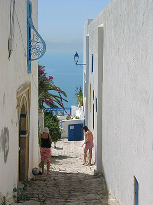 Peles. Vesela ģimene. Tādas vējainas, jo netālu ir valsts galvenā lidosta. Drīz esam zili baltajā Sidi-Bou-Said pilsētiņā. Vai nu tradīcijas, vai pilsētas valde, bet visas mājas te ir tikai baltas ar ziliem elementiem.
