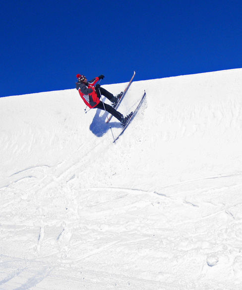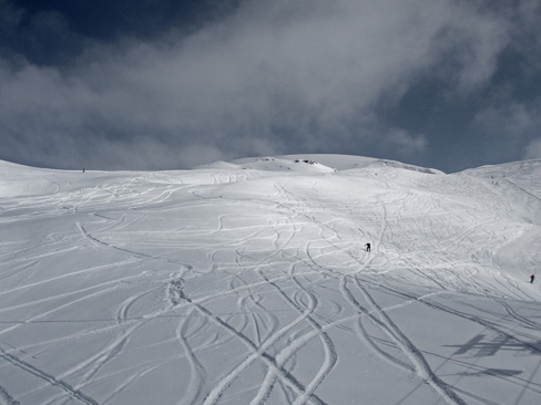 Laiks baudīt plašumu un pūderi! Plašie sniega lauki vēlāk aizved līdz izaicinošām klinšu kraujām. Te nu nekas cits neatliek, kā improvizēt.